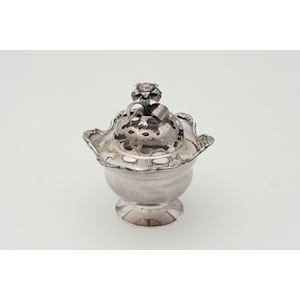 The beautiful potpourris in this display cabinet show the richness of the noble elite in Zutphen in the eighteenth century. The nobility played an important role in the economy and society of Zutphen. The Van der Capellen, Schimmelpenninck and Van Heeckeren families had a great deal of wealth and authority. The Van Heeckeren’s were the first residents of the house you are now in. Hence Hof van Heeckeren. A rich family had a richly laid table, which didn’t lack silver. As well as the silver utensils you see in the display cabinets, potpourri was often found in the drawing room. Potpourri was the predecessor of the modern air freshener. A potpourri is a container with a partially open lid. The container was filled with a mixture of dried flowers and herbs. There are just 20 silver potpourris known in The Netherlands. Most were made by Zutphen’s silver smiths. Push A for a unique example of the crafsmanship of the Zutphen’s silver smiths.