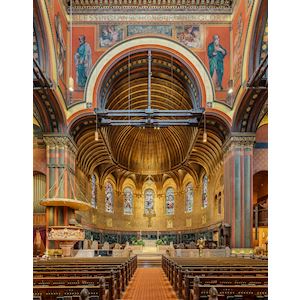 Take a few moments to look around the room from this vantage point. Is this what you thought the church was going to look like? Compare what you’re seeing with what you might have expected from looking at the exterior of the church. Now think about other churches you’ve seen, and consider what’s different about the interior you’re standing in today. What surprises you? What details do you notice? How does the church make you feel? As you think about these questions, we’ll cover a little bit of the history of the church and how this building came to be here in Copley Square. When Trinity was founded in 1733 it was a parish in the Church of England. After the American Revolution, the Anglican churches in the United States formed what is now the Episcopal Church. Trinity’s original site was in an older part of the city, where it prospered for many years. But by the middle of the nineteenth century the parish had a dwindling membership, because it was isolated in what had become a largely commercial part of Boston. A new life for Trinity began with the arrival of a young, charismatic rector, Phillips Brooks. His arrival in 1869 reinvigorated the parish, which grew quickly. The congregation needed a more suitable location, and, in 1872, they purchased the prominent plot of land here in Copley Square where you find Trinity today. The congregation’s timing was excellent because the old church was destroyed in the Great Boston Fire that same year! A competition was held to select the architect to design the new church. H. H. Richardson and his bold new design won the day. Educated at Harvard, Richardson studied architecture in Paris at the École des Beaux Arts, the academy of fine art, and was among the very first Americans to be trained there. Here at Trinity, Richardson developed his signature style. It’s a re-expression of an early medieval European form, called the Romanesque. Characterized by round arches, the Romanesque style was freely adapted by Richardson to improve its visual appeal with the clear and rational use of brownstone trim and decorative motifs. The building is organized around the massive central tower and creates an overall effect of monumentality and permanence but also a clear sense of newness and originality . . . a truly American style. Richardsonian Romanesque quickly became very popular for civic and commercial buildings such as libraries, town halls, courthouses, and train stations. If you’d like to hear more about the construction of the church, press the A button on your player, now. Page Break First called Arts Square, and the original home of the Museum of Fine Arts, Copley Square was the heart of Boston’s most fashionable new residential area, the Back Bay. Trinity was one of many churches that moved to this new part of Boston. The actual construction of the church took about three and a half years, at a final cost of about $750,000. The land here was created between 1850 and 1890 by filling in close to 500 acres of tidal marshes. It was one of a number of land-making projects in Boston designed to provide housing for the growing population Before construction of the church began, there was a period of careful engineering study and refinement of the original design. As with most other buildings of the time in the marshy Back Bay, Trinity’s foundation was, and still is, supported by wooden pilings. The pilings are 35- to 40-foot timbers, which resemble telephone poles. 4,500 of these were driven down through the gravel fill with steam pile drivers. They are still there supporting the walls of the church more than 140 years later. Provided that the wooden piles are not exposed to oxygen and remain saturated with water, they’ll remain solid indefinitely.