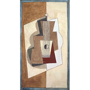 This work dates from Picasso’s Cubist period. Like the other Cubists, Picasso frequently depicted musical instruments. He had never held a guitar when he painted one for the first time. He later said: ‘I bought one with the money I earned then, and never painted another one.’
