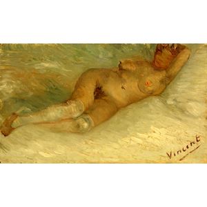 在1871年创作的这幅《 斜倚裸女 》,呈现了丰满的体表和简化的形状;面部不如身体描绘得那么细致。 梵高在此期间尝试通过颜色,形状,光线和布局来表达作品。而对现实的景象的描绘,对他来说并不太重要。
