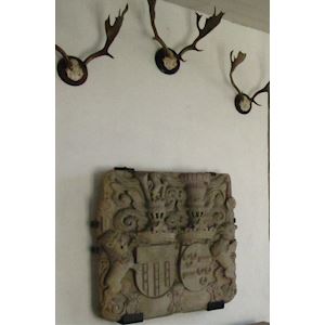 Toen het kasteel werd gebouwd, was hier de hoofdingang. Dat is nu bijna 500 jaar geleden. Destijds kwamen bewoners en bezoekers binnen over een houten brug en zat de deur waar nu het raam zit. Die deur was geschilderd in de kleuren van het familiewapen van Van Rossem: rood, wit en geel. De lange tocht door vochtige keldergewelven bleef de gasten toen bespaard! Toen de huidige stenen toegangsbrug werd aangelegd, verdween de oude voordeur en kwam er hier de bescheiden zij-ingang, een dienstingang eigenlijk. Vanaf dat moment kwamen belangrijke gasten het kasteel binnen via de grote ingangspartij, die uitkomt in de imposante hal. Dit kleine vertrek is vaak aangepast, afhankelijk van de wensen en behoeften van de dertien generaties die het kasteel bewoonden. Zo is het zelfs gebruikt als mangelkamer, om de was te ‘strijken’.