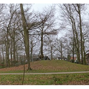 Ziet u dat heuveltje? In de volksmond wordt het ‘t baargie´ genoemd. Niemand weet waarom het bergje hier ligt, maar er doen wel allerlei verhalen de ronde. Zo zou het zijn ontstaan toen in 1660 een van de beken werd gegraven.Er wordt ook beweerd dat het een ijsberg is, maar dat is natuurlijk geklets - die ligt ergens anders. Misschien is het bergje wel gemaakt van de grond afkomstig uit de zaagkuil. Anderen geloven dat het een mooi uitzichtpunt was compleet met theekoepeltje en al. In de veilingcatalogus van 1882 worden wél twee koepeltjes genoemd… zou dat laatste dan misschien toch kloppen? We zullen het misschien wel nooit zeker weten. Nu is het vooral een geliefde plek om te sleeën in de winter.