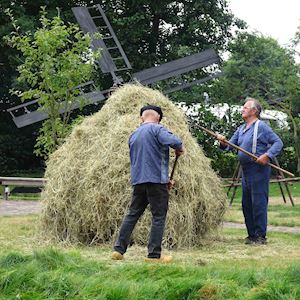 In de zomer trokken de boeren eropuit om het gras op oude legakkers en dichtgegroeide trekgaten te maaien en te hooien. Het land was door de vervening te schraal geworden voor landbouw en zelfs het hooi was maar van matige kwaliteit. Toch waren er kopers voor. Het werd onder meer naar Engeland geëxporteerd. Daar werd het gevoerd aan paarden die ondergronds werkten in de kolenmijnen.Het was zwoegen in de hitte om het hooi hoog op te tasten in het vlot of de bok, de twee vaartuigen die hiervoor gebruikt konden worden – zeker als je weet dat iedereen ook in de zomer lang ondergoed onder zijn kleren droeg. Bij extreme warmte ging de broek uit, dan werd er in de lange onderbroek gehooid. Soms was de hooilading zo hoog dat de boot bij terugkeer in het dorp niet onder de brug door paste. Dan werd de hele familie opgetrommeld om het hooi aan te stampen. Ook het melken van koeien was een intensieve bezigheid, want ook al had niemand veel dieren, je moest er twee keer per dag heen en ze stonden vaak op landjes ver weg. Je moest dan al om half zes uur van huis. Jongens gingen al vanaf hun elfde jaar mee. Veel Gietersen hadden ook een geit, die werd ook wel de armeluis-koe genoemd.