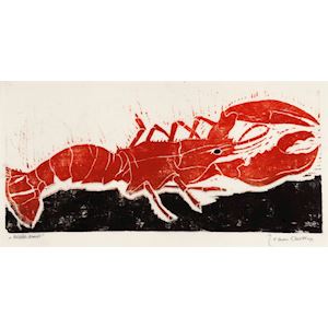 Jeanne Bieruma Oosting was a painter and sculptor, but most notably an outstanding graphic designer. While her paintings literally reflect reality, her graphic work is more poetic, and her imagination seems to come to life. In the etchings, lithos and linocuts, she had a preference for animals. This linocut of a crayfish is a good example. A linocut is a printmaking technique. With printmaking, the area that is printed comes to lie above the rest. What has to stay white is gouged out. A linocut can be compared to a woodcut. Cutting into lino is easier though, because it is softer, more flowing lines are therefore formed. The print surfaces are often smoother and don’t have grain marks on the wood. Surrounding the crayfish, you can clearly see the grooves from the gouging. In this room you can also see several woodcuttings by Wendelien Schönfeld.