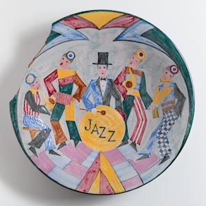 Die Zwanziger sind eine Zeit der scheinbaren Stabilität in Berlin. Die Großstadt wird zum Symbol neuer Freiheit. Zumindest für jene, die es sich leisten können. Die modernen Impulse kommen vor allem aus den USA: Etwa der Jazz. Jazz entstand um 1900 in den Südstaaten. Kennzeichnend für Jazz ist die Improvisation. Die Modetänze der Zwanziger wie Foxtrot oder Charleston faszinieren mit ihrem jazzigen Rhythmus. Dieser Teller zeigt eine Tanzszene der Zeit. 1929 trifft die Wirtschaftskrise Berlin. Und sie macht mehr als eine halbe Millionen Berliner arbeitslos. Die Armut wächst und radikale Parteien rufen zu Demonstrationen auf. Gewaltsame Straßenkämpfe nehmen zu. Und viele glauben nicht mehr, dass demokratische Parteien ihre Probleme lösen. Ende 1932 wählen mehr als eine Millionen Berliner die Nationalsozialisten. 1933 wird Hitler Reichskanzler und die NS-Diktatur beginnt. Den Nazis ist die moderne Musik ein Dorn im Auge. Gespielt werden soll nur noch „anständiger“ Jazz. Was sie darunter verstehen, bleibt unklar. Aber im Radio verbieten die Nazis vor allem die Musik amerikanischer Jazzmusiker mit jüdischen oder afro-amerikanischen Wurzeln.