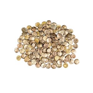 54 voor onze tijdrekening. Julius Caesar en zijn Romeinse troepen palmen onze streken in. In dat jaar staan ze oog in oog met de Eburonen en hun twee koningen, Ambiorix en Catuvolcus. Die ontketenen een opstand. En daar hebben deze gouden munten alles mee te maken… Een jonge fruitteler uit Haspengouw ontdekte ze in 1997. Je ziet er hier 158, waaronder 116 van de Eburonen. Hun munten hebben op hun voorkant een driebeen, en op de achterkant een steigerend paard met daarboven enkele bolletjes. De overige 42 munten zijn van buurvolkeren, zoals de Nerviërs, die vooral in het huidige Henegouwen wonen, en de Trevieren uit het gebied rond Trier. Terug naar de munten van de Eburonen. Ze líjken van goud, maar ze bevatten ook veel koper en zilver. Dat komt doordat het crisismunten zijn. Ambiorix en zijn Eburonen hebben waarschijnlijk veel geld nodig om voor hun opstand tegen de Romeinen groepen krijgers te betalen. Daarom slaan ze veel munten, ondanks het schaarse goud. Iemand heeft de munten wellicht halsoverkop verstopt in de grond, vermoedelijk om ze later weer op te graven. Door dat te doen proberen de Eburonen te voorkomen dat het geld in Caesars handen valt. Want ook hij heeft middelen nodig om zijn soldaten te betalen. En Caesar verrijkt graag ook zichzelf! Deze munten heeft hij alvast nooit gevonden. Tot 1997 wist niemand van hun bestaan af.