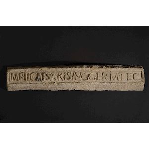“Van Keizer Tiberius Caesar Augustus, lood van Germanië, TEC”. Dat staat in het Latijn op deze loden baar, goed voor 18 kilogram. De baar dateert dus uit de tijd van keizer Tiberius, 14 tot 37 na Christus. Hij is eigendom van de keizer, zegt de tekst, het lood komt uit Germanië en TEC verwijst vermoedelijk naar de persoon of onderneming die de mijn voor Tiberius exploiteert. De keizer bezit álle groeven en mijnen in het Romeinse Rijk. Uit labo-onderzoek weten we dat déze baar komt uit het gebied tussen Aken en Trier. In Germanië, dus. Dat gebied is op dat moment onder militaire controle van de Romeinen. De baar is gevonden in het centrum van Romeins Tongeren. In Tiberius’ tijd wordt de stad volop uitgebouwd. Lood wordt er gebruikt om bouwstenen van grote openbare gebouwen aan elkaar te verankeren en ook om er buizen voor de waterleiding mee te maken. Romeinse technieken dringen hier dus al heel snel door. De baar moest in Tongeren worden gesmolten om het lood te kunnen gebruiken, maar dat is nooit gebeurd. We kennen maar één andere baar uit deze periode waar ook ‘Germanië’ en ‘Tiberius’ op staat. Die komt uit een scheepswrak in Zuid-Frankrijk! Conclusie: al in Tiberius’ tijd voert men lood van Germanië uit naar het gebied van de Middellandse Zee. Ook daar is blijkbaar nood aan lood. Die uitvoer van lood is één voorbeeld van hoe ook het noorden al heel snel een onderdeel wordt van het handelsnetwerk in het Romeinse imperium.