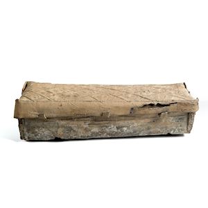 Soms denk ik: ik had wel in de Romeinse tijd willen leven. Maar soms denk ik ook: nee, toch maar niet. Zoals bij dit kistje. Het is een doodskist. Van een jong kind. Of zelfs een baby. Ja, in de Romeinse tijd sterven er heel veel pasgeboren en jonge kinderen… Vandaag hebben we gelukkig goede geneesmiddelen en dokters. Mensen worden veel ouder. Dit kistje weegt loodzwaar. Het is dan ook echt van lood. Lood zorgt ervoor dat een lijk voor langere tijd goed bewaard blijft. Misschien vonden de ouders dat belangrijk. Misschien geloofden ze dat er voor hun kind en voor henzelf leven was na de dood. En daarom betaalden ze ook veel geld voor dit kistje. Zo’n loden doodskist is bij ons heel zeldzaam. Archeologen vinden er meer terug in Syrië en Palestina, dat is in het oosten van het grote Romeinse Rijk.
