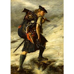 This painting, called Disbanded, by John Pettie, depicts a scene from the Jacobite Uprising of 1745 to 1746. It shows a Highland Warrior, returning home with his spoils of war, including the distinctive redcoat worn by officers of the Government army. Inspired by the work of historical novelist Sir Walter Scott, Victorian artists like John Pettie helped to create the romantic image of the heroic kilted Highlander. Far from an individual fleeing the battlefield as a member of a defeated force, Pettie recasts the disbanded individual as a noble warrior. Images like these have become the way in which many people visualize Scots and Scotland today. This painting appears to have been inspired by conversations between Pettie and his friend and patron, the Dundee industrialist and art collector James Guthrie Orchar. John Pettie stayed with Orchar in 1877, before spending a long holiday at Callander, in the heart of Scott country. Pettie completed this painting later that same year. The painting was highly regarded and was used to illustrate the 1893 edition of Waverley. It was Scott’s most popular and best-known novel, and was set in the midst of the Jacobite uprising. Disbanded is one of our visitors’ favourite paintings.