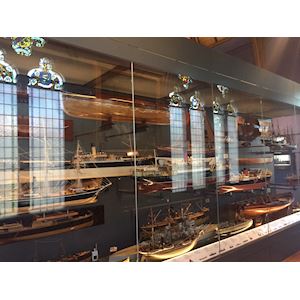 The models in this case are part of a larger collection, which represents Dundee’s rich maritime past. We use these models to tell the story of Dundee’s shipbuilding heritage. They represent sailing ships, clippers, war ships and pleasure craft, Dundee is best known for the three J’s – the industries associated with Jute, Jam and Journalism. But Shipbuilding was also a hugely important industry in Dundee. Throughout the 19th and 20th Centuries, Dundee shipyards were known for their world-class skills. They successfully competed against the renowned yards on Scotland’s West coast for major contracts. From the early 19th century, Dundee’s economic development was largely tied to the development of the city’s shoreline. The ship model collection has two categories: builder’s models and amateur models. Builder’s models are scale models built before or just after the construction of the actual ship, like the model of sewage vessels Bexley, Newham and Hounslow you see here. Builder's display models were commissioned by the ship owners, made by skilled craftsmen and displayed within the company’s boardroom to showcase their fleet to attract support and investment. Many amateur models were built by crew members of local ships, using plans and photographs of the full-size vessels. The craftsmanship in the amateur models often reflects the love of the maker for seagoing vessels, as you can see in the model of the Terra Nova Look for the model of the Strathmore at the top of the case, on the back wall. It was made in 1875, the same year as the Strathmore ship was launched.