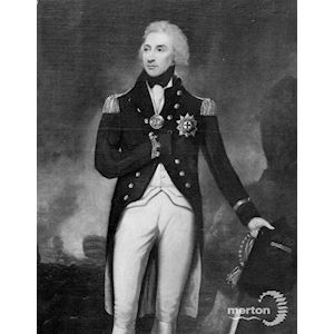In October 1801, Horatio, Lord Nelson, Admiral of the British Fleet, moved into Merton Place. This was the only home he ever owned in his own right and he shared the property with his lover, Lady Emma Hamilton and her elderly husband, Sir William, a former British diplomat. This unusual domestic arrangement scandalised British society, however Nelson’s status as a national hero endeared him to the ordinary people of Merton. Originally known as Moat House Farm, Merton Place was purchased from the widow of calico printer, Charles Greaves for £9K. Emma quickly supervised its renovation and by 1805 the simple one wing house had been transformed into a fine double-fronted property with fine ornamental grounds, including a moat named “The Nile” in honour of one of Nelson’s famous sea battles. Today the Nelson Arms pub marks the former entrance gates to the house, which stood in 1.5 acres of land, south of Merton High Street. More land was purchased, across the road in the parish of Wimbledon. A tunnel ran beneath the high street, allowing Nelson’s carriage to transport him from one side of his estate to the other in privacy. Nelson regularly worshipped at Merton Parish Church, he watched cricket matches on Mitcham’s famous green and paid visits to the home of his friend, James Perry near Wandle Park, in addition to Eagle House School in Wimbledon – renamed Nelson House in the Admiral’s honour. Nelson thrived in what he termed “Paradise Merton” and his home was filled with extended family and naval colleagues. When Horatia, his secret daughter by Emma, joined the household, Nelson’s happiness was complete. Sadly this was not to last.On 5 September 1805 Nelson was called back to command the fleet, leaving behind “dear Merton [and ] all that I hold most dear in this world to serve my King and Country.” On 26 October at Trafalgar, Nelson’s tactical genius and the superior training of the Royal Navy led the outnumbered British ships to a decisive victory over Napoleon’s combined French and Spanish fleet. During the battle Nelson was fatally wounded on the deck of his flagship HMS Victory. He was later buried at St. Paul’s Cathedral. Grief-stricken, Emma Hamilton fell into a spiral of debt despite help from Nelson’s Merton friends, including Abraham Goldsmid of Morden Lodge. The Admiral’s estate was sold and Merton Place was demolished in 1823. Today the site is covered by the flats of Doel Close, part of the High Path estate.