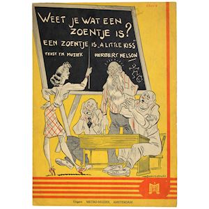 In ontmoetingen tussen geallieerde soldaten en Nederlandse meisjes vormt de taal geregeld een barrière. Op een enigszins komische manier stellen Nederlandse tekstschrijvers het leren van Engelse woordjes in hun liedjes centraal, zoals in het nummer 'Weet je wat een zoentje is? Een zoentje is A Little Kiss'. In enkele liedjes is wel het nodige aan te merken op het gebruik van de Engelse taal. Dat is begrijpelijk, want vijf jaar lang is er nauwelijks contact geweest met Engelssprekende landen en is Angelsaksische en Amerikaanse muziek verboden. 𝘈𝘧𝘣𝘦𝘦𝘭𝘥𝘪𝘯𝘨: Weet je wat een zoentje is? Een zoentje is 'A Little Kiss'. Collectie Streekmuseum Jan Anderson.