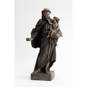 Do you see Saint Anthony towering above you? … Saints are of great importance to Catholics. They decorate churches, adorn the many chapels, and even grace Catholic homes from a place of honour on the sideboard… Saints lead the way to God and act as mediators Saint Anthony of Padua is probably one of the best known and most venerated saints. He is invoked against infectious diseases, fevers and infertility and to ensure a smooth and successful birth. He is also invoked for protection against the devil, heresy and witchcraft and all of the evils they bring about. His prayer of exorcism – as a medallion, or printed on paper, cardboard or linen – was hung on the paternoster, worn around the neck or sewn into clothes for added protection. Saint Anthony of Padua is the patron saint of bakers, miners, travellers, married couples, lovers, childless women, pets, cattle and the strawberry sellers of Rome. But above all else, he is called upon to find and restore whatever has been lost. A statuette or a print of Saint Anthony used to be a common feature in Flemish living rooms and countless people prayed: ‘Saint Anthony, dearest friend, please ensure that my search for – insert object of choice – comes to a fruitful end’. And, as far and away the most popular saint to invoke when something needs to be found, unmarried women also appeal to St Anthony to find them a husband. From the 19th century on, it became customary to donate bread to the poor – the so-called ‘Saint Anthony’s bread’ – in thanks for answered prayers. But there was also a flip side to the coin: in some areas, if a lost object wasn’t found quickly enough, Saint Anthony’s statue was turned to face the wall, placed in the corner, banished to the cellar, or even stood under a dripping tap until the missing object was found.