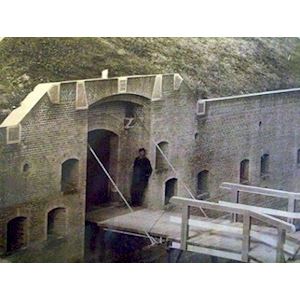 De Originele Ophaalbrug met soldaat in 1870 : Fort Pannerden het hart van de Hollandse Waterlinies.