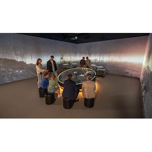 Regardez bien l’horloge accrochée au mur. Attendez que le compteur soit sur zéro avant d’entrer dans la salle suivante. Dans cette expo découverte, nous allons vous expliquer le déroulement du front pendant la Bataille de Passchendaele. La Bataille de Passchendaele s’est déroulée en trois phases. Chaque nouvelle attaque était précédée d’une immense préparation logistique et de bombardements monstrueux. La carte montre comment l’offensive s’est déroulée. Le compteur vous dévoile l’énorme tribut humain, comparé au maigre gain territorial enregistré. Des photos historiques vous donneront une idée des souffrances immenses et de la dévastation autour de Zonnebeke. Vous verrez comment chaque attaque s’est vue enlisée dans le paysage ravagé ou a été bloquée par la féroce opposition allemande. Ce qui aurait initialement dû être une percée alliée vers le littoral s’est en définitive fini en interminable et épuisant combat près de Passchendaele.