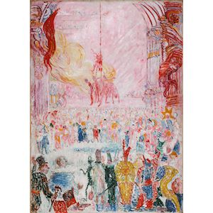 In 'De wraak van de nar Hop-Frog' verbeeldt de Belgische kunstenaar James Ensor een verhaal van Edgar Allan Poe. Hij bewondert de macabere verhalen en gedichten van de Amerikaanse schrijver en laat zich daardoor inspireren.