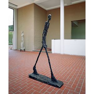 Alberto Giacometti is mainly known for his tall, spindly man-like figures in bronze. They are alone or in a group, the women stand still, the men are walking – like this man. Giacometti uses his observation of hurrying people in the big city as the basis for these sculptures. He writes: ‘People gather and leave all the time and before you know it they walk towards each other to meet again. This way they constantly form and change an endless stream of compositions of an incredible complexity.’