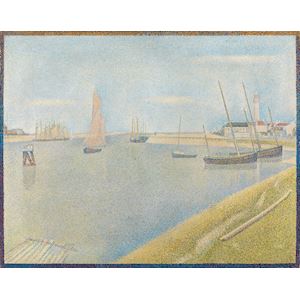 In Seurat’s time the Gravelines harbour basin is the home base for the herring and cod fishing fleet. And yet there is no activity whatsoever on the painting. The sailboat entering the harbour does not even have a skipper. This clompete desolation adds a mysterious feeling to this harbour view. Seurat reduced the visible reality to its essence and created a timeless, tranquil atmosphere.